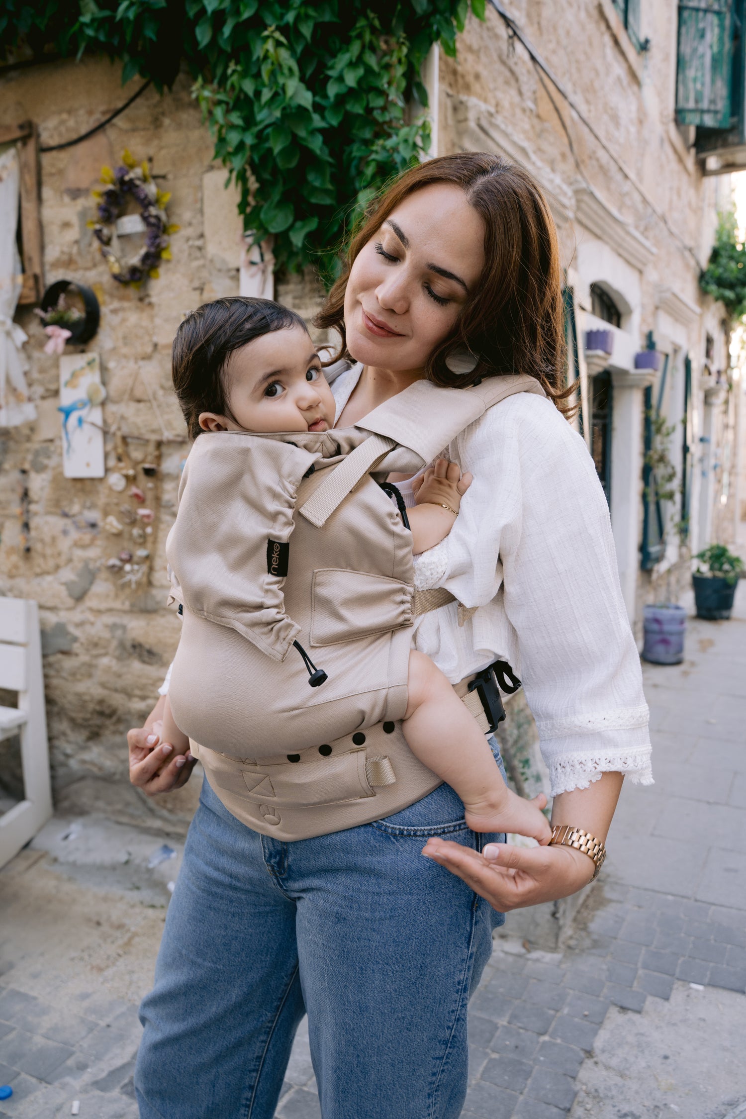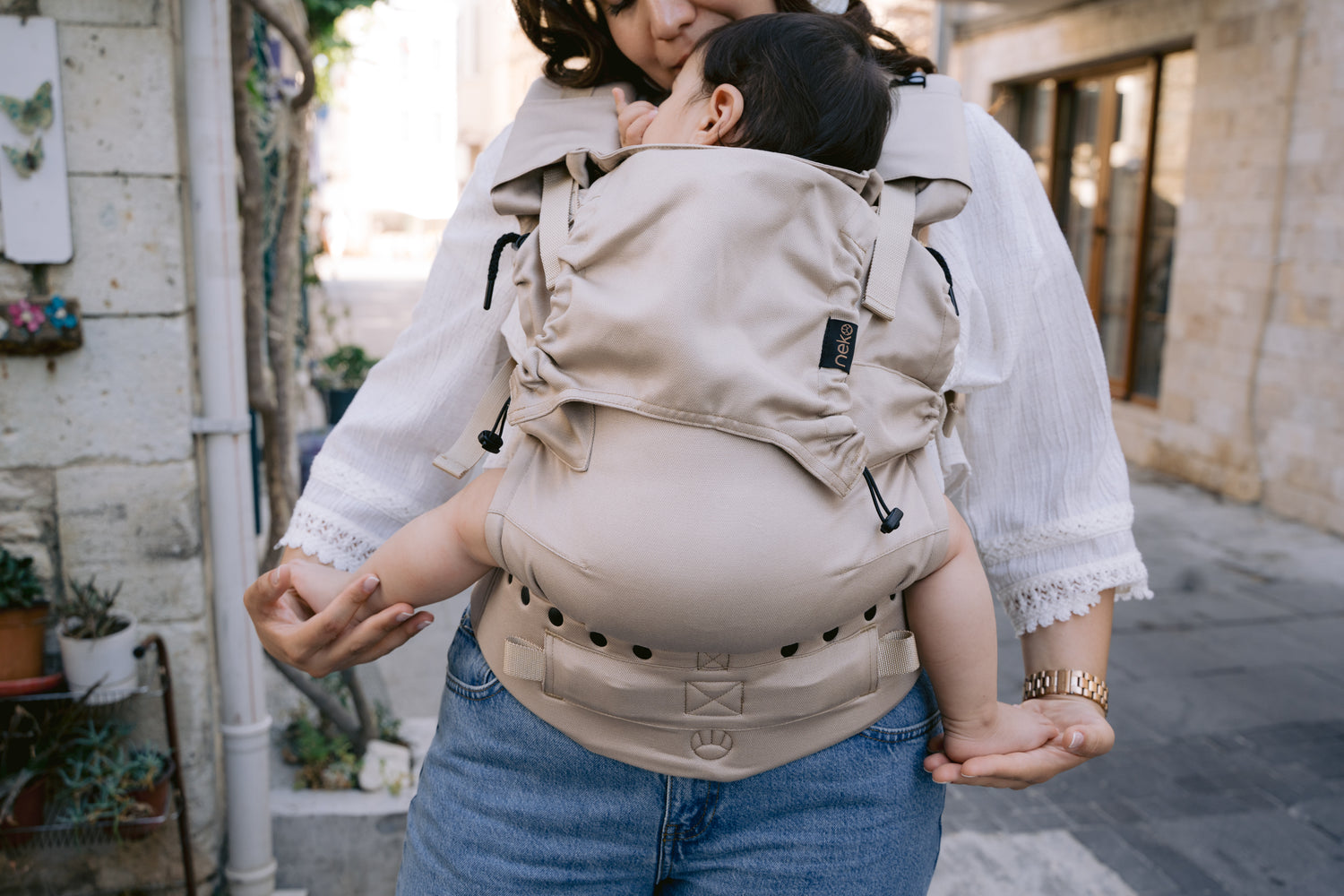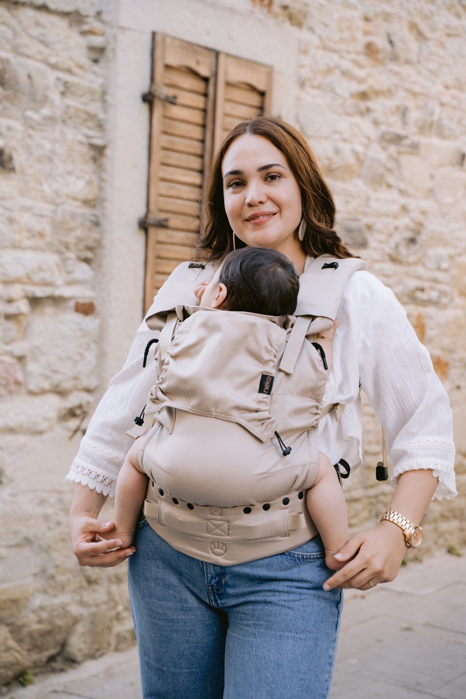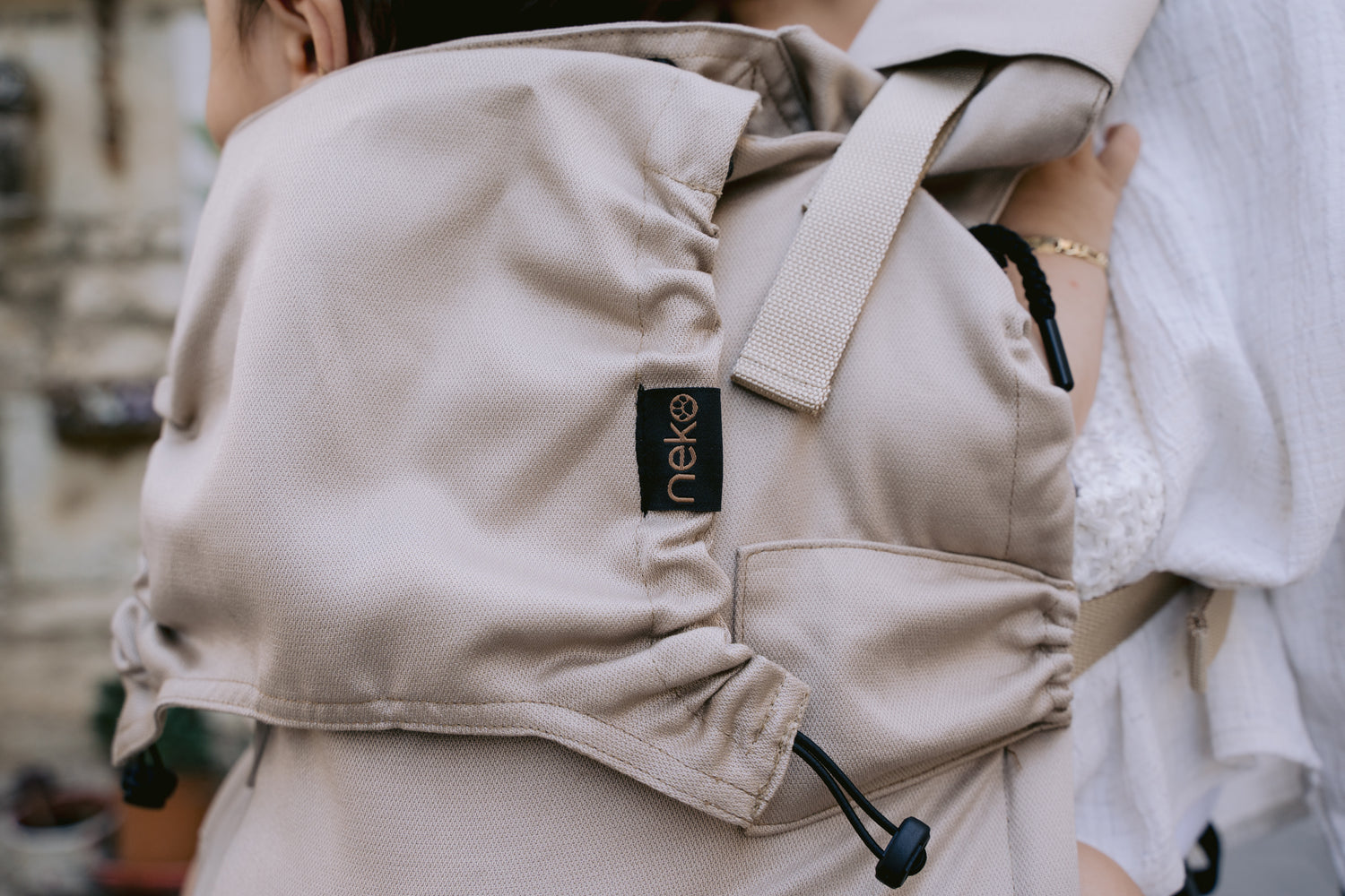 De Neko Switch Baby Size in Pebble is een volledig verstelbare, ergonomische baby draagzak die met je kind meegroeit vanaf de allereerste weken tot ongeveer 2–3 jaar.